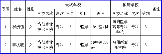 附件:洛阳职业技术学院拟转学(转出)学生名单