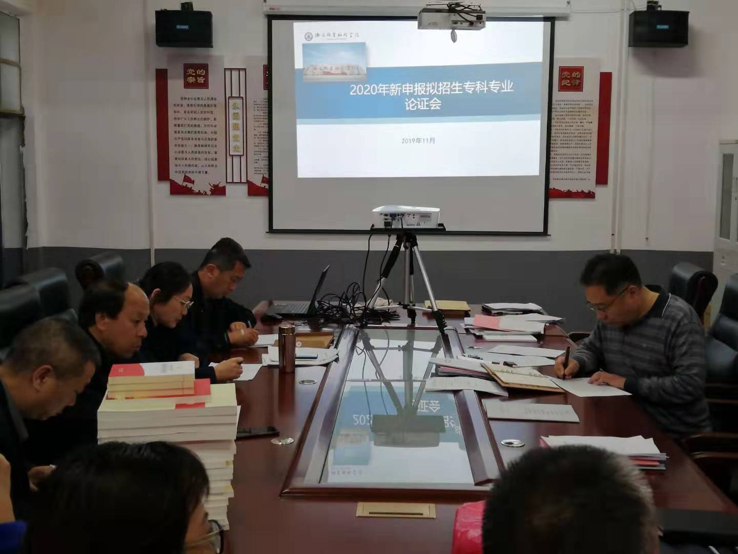2019年11月7日下午,我院在伊滨校区组织2020年新申报拟招生专科专业论证答辩会,院长程相朝出席本次会议,计划财务处、人事处、学生处相关人员参加会议,会议由教务处处长赵明主持。