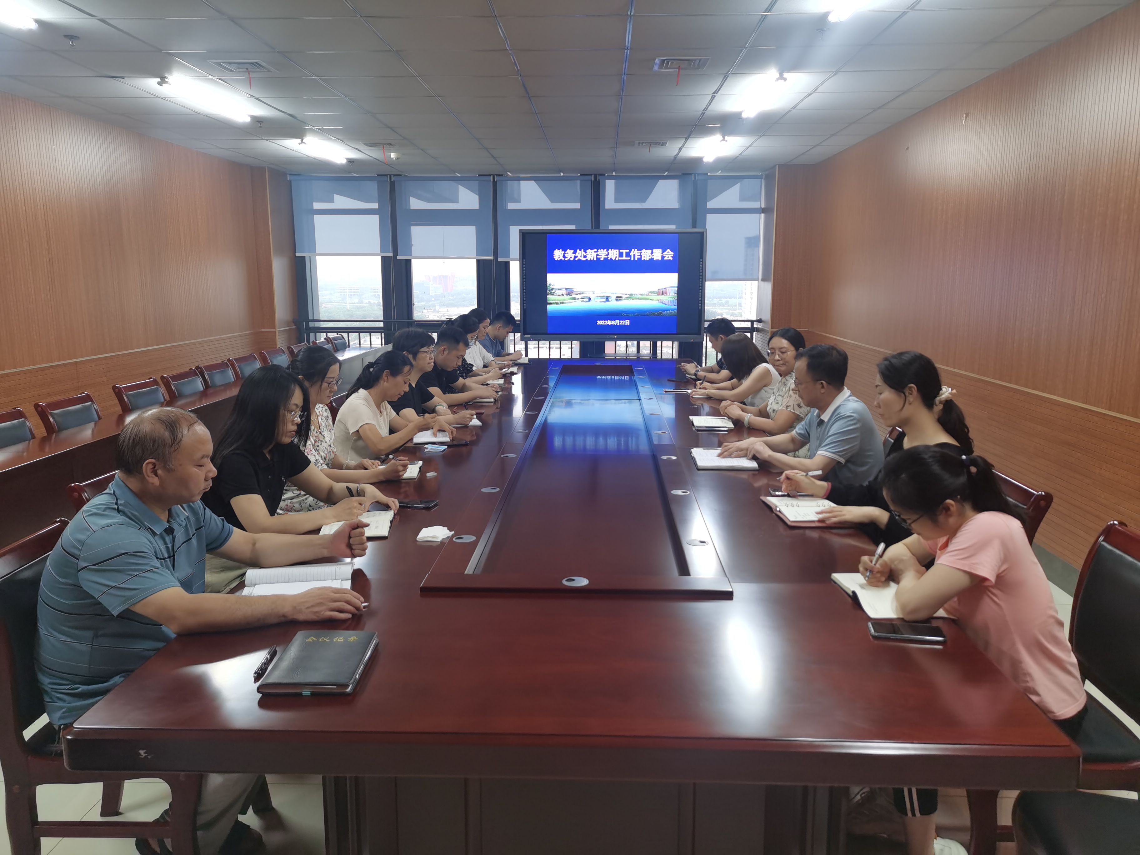 为确保新学期各项工作有序开展,8月22日下午,教务处在图书馆958室组织召全处工作会议,总结暑期工作,研究部署开学初相关教学工作。会议由教务处处长刘晨艳主持,教务处全体人员参加会议。