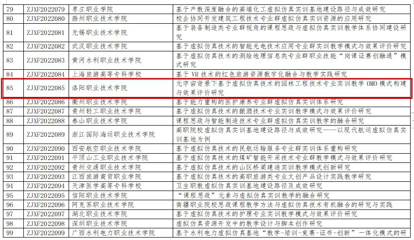 11月7日,教育部科技发展中心公布了2022年度《虚拟仿真技术在职业教育教学中的创新应用》专项课题名单,我校申报课题《元宇宙背景下基于虚拟仿真技术的园林工程技术专业实训教学OMO模式构建与效果评价研究》名列其中。