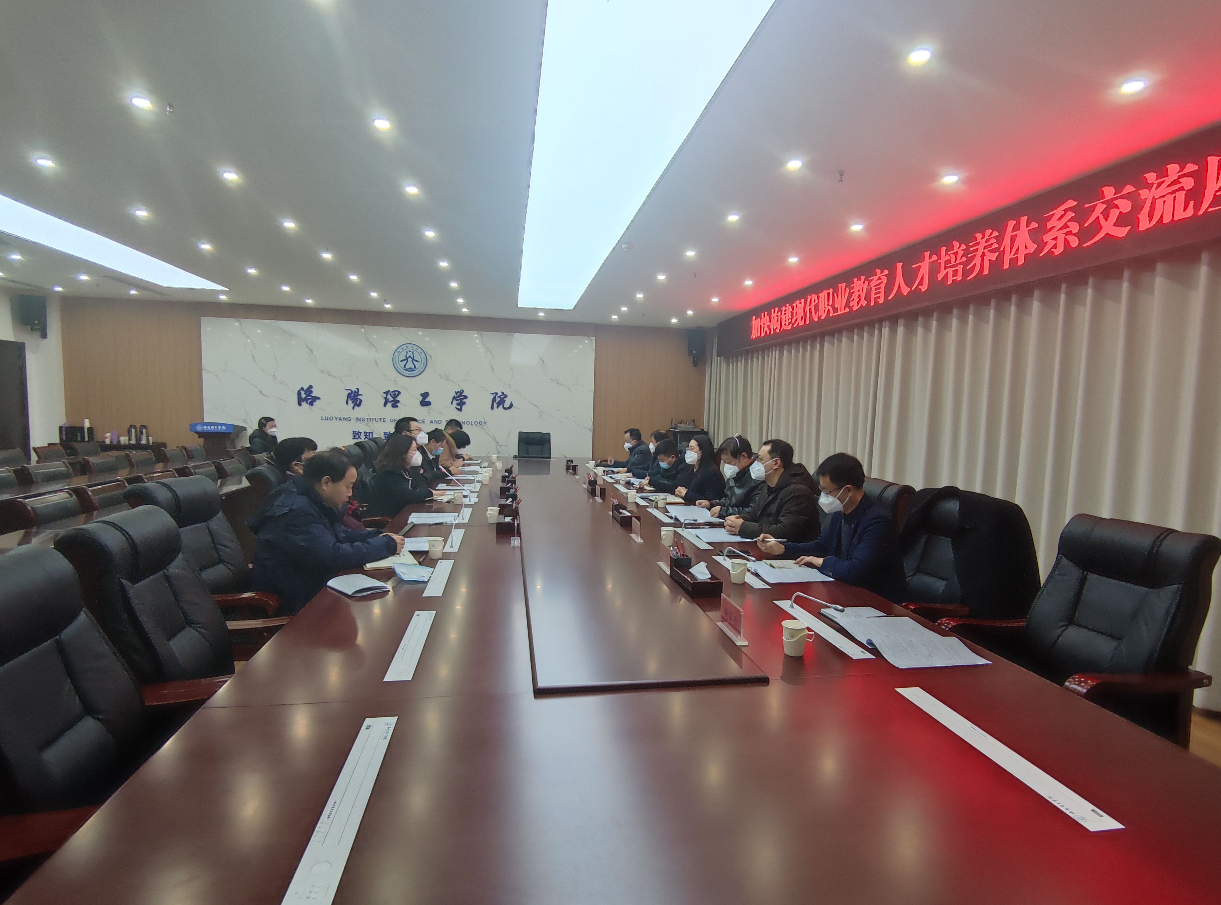 1月11日上午,我校与洛阳理工学院开展职业教育人才培养体系建设交流,交流座谈会在洛阳理工学院王城校区办公楼116会议室举行。洛阳理工学院招生就业处处长路利红以及相关二级学院负责人出席会议,我校教务处处长刘晨艳、招生就业处处长宋来炜以及相关二级学院负责人出席会议。