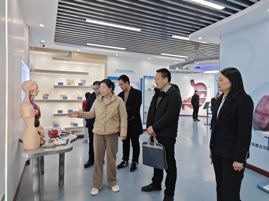 座谈会后,尤登攀一行参观了生命科学与健康教育馆、妇产科学、儿科学实训室及智慧养老管理与服务实训室。