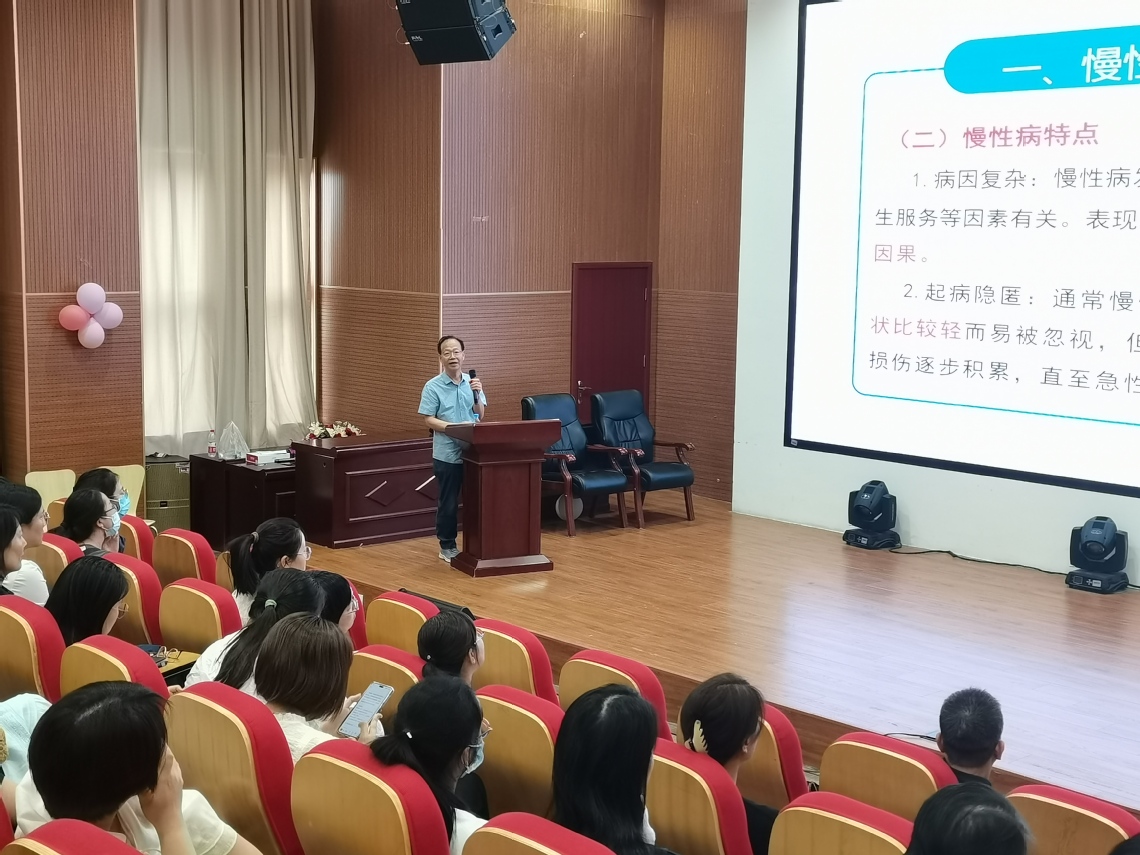 孙建勋教授的讲座主题是“慢性病健康管理”。孙教授分别从慢性病健康管理的重要性、慢性病的认识与预防、慢性病的诊断与治疗和慢性病患者的自我管理等方面,向现场的医务人员做了一次精彩的慢性病科学教育培训,达到了医院与学校医教协同的教育目标。